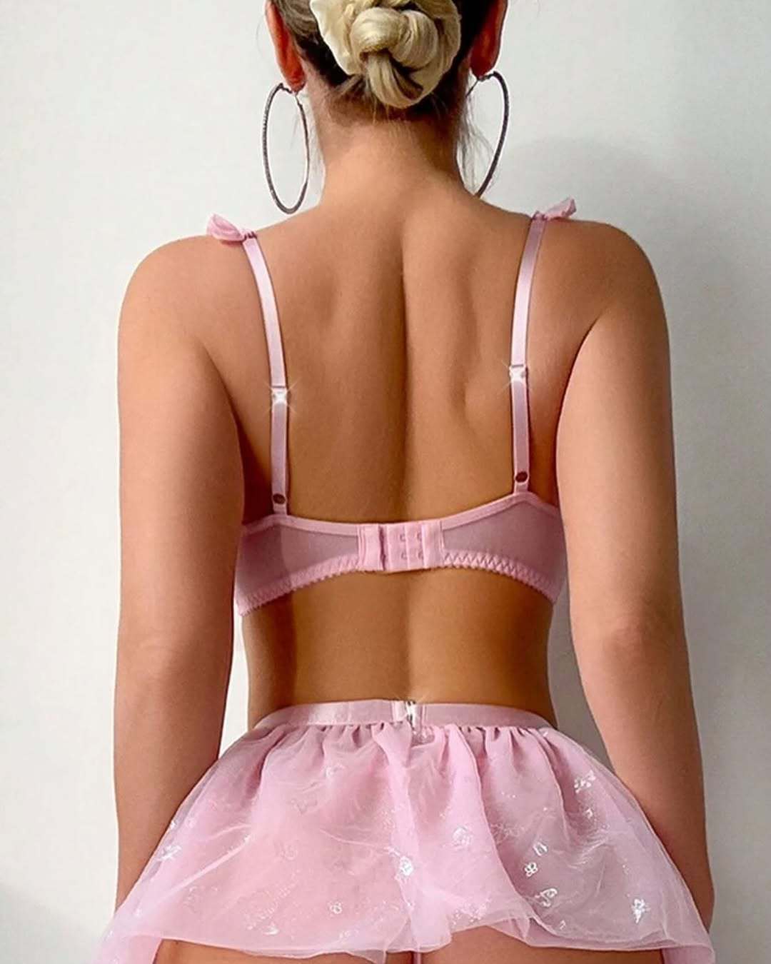Cross-border Foreign Trade Fashion Simple Sexy Beaded Chain Transparent Mesh Pleated Lace Strap Lingerie Set