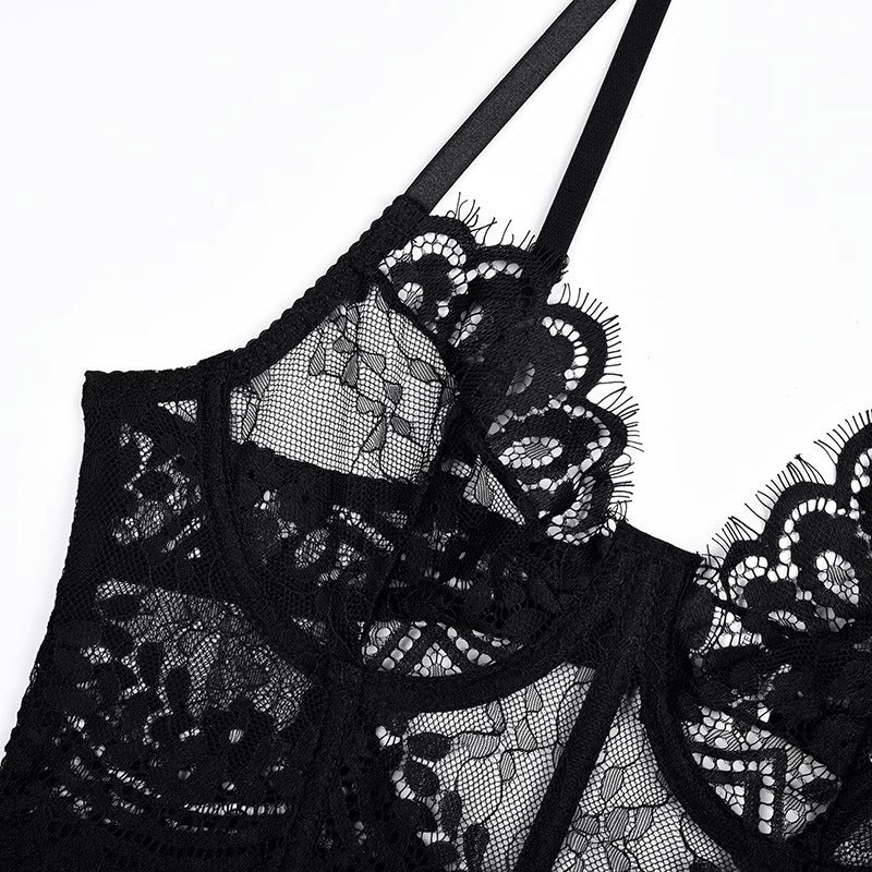 Sexy Lace Mesh Splicing Transparent Three-Piece Lingerie Set