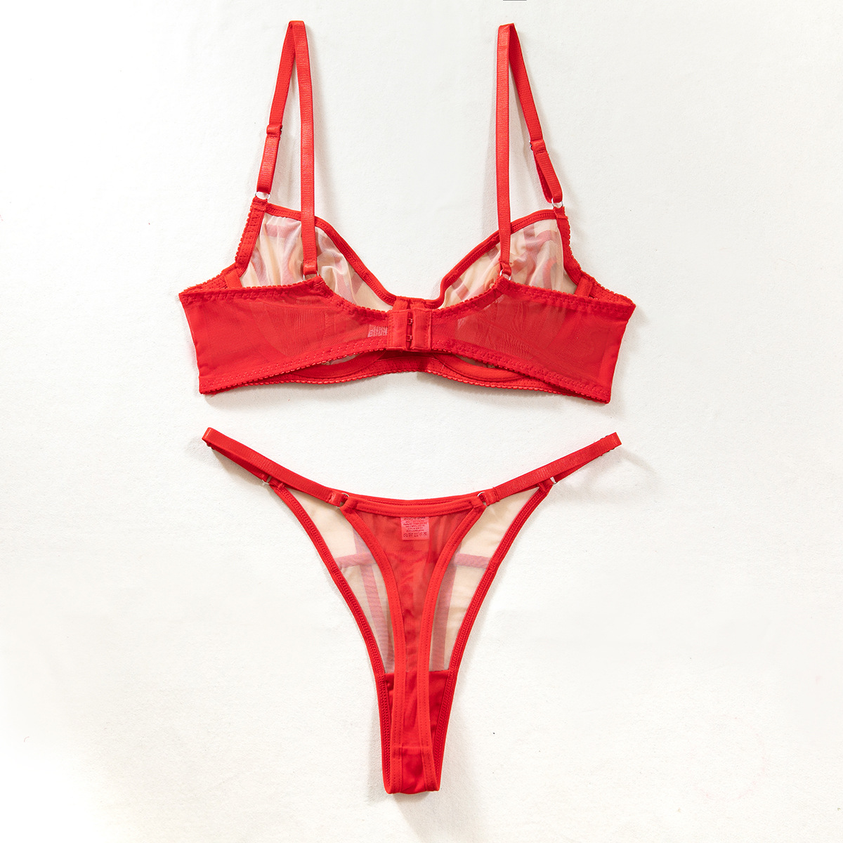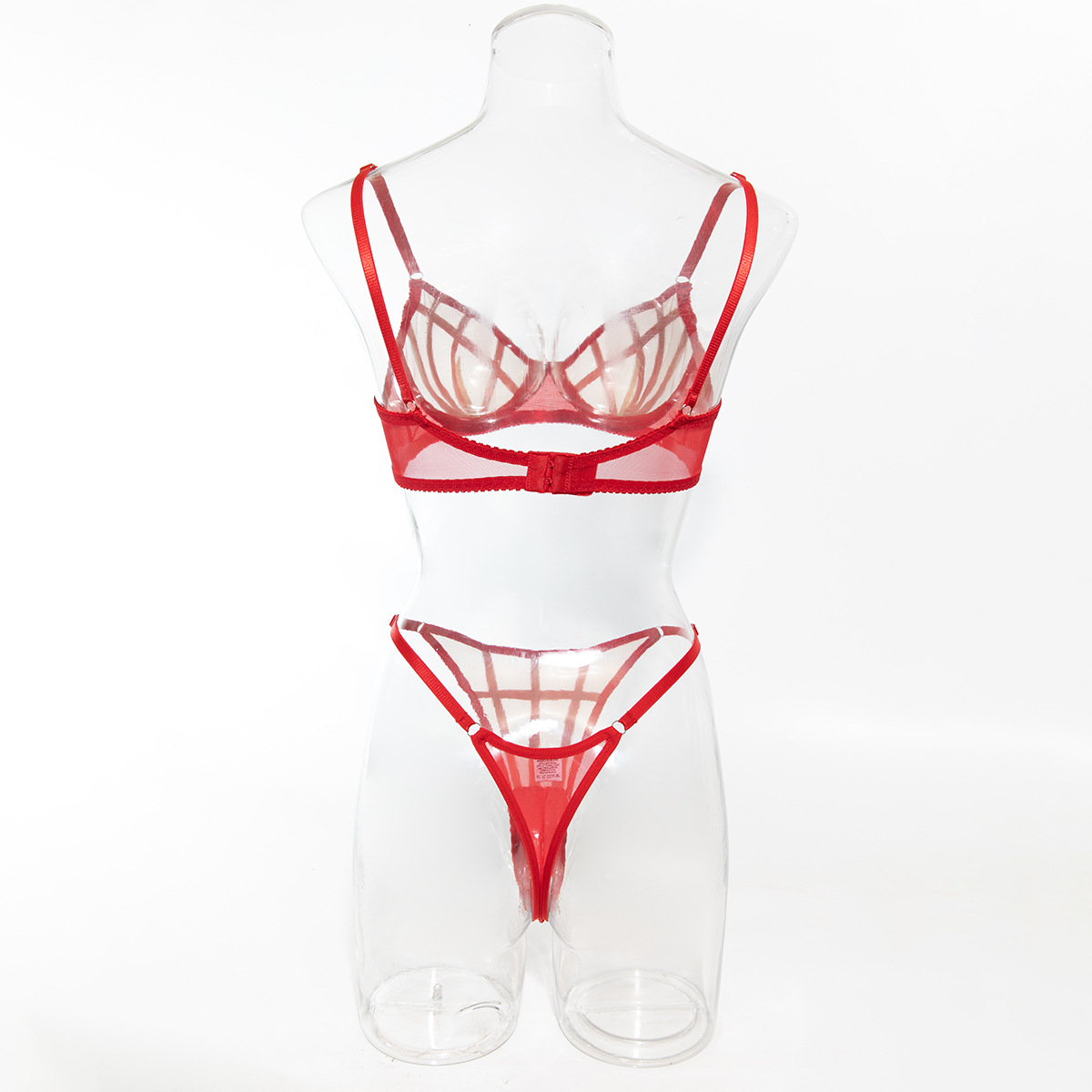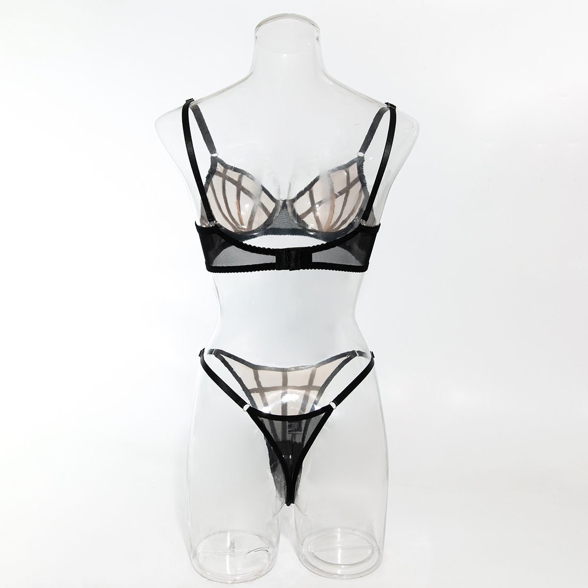 Sexy Three-Piece Transparent Lingerie Set for Women Thin Mesh Gathered Tempting Bra Suit